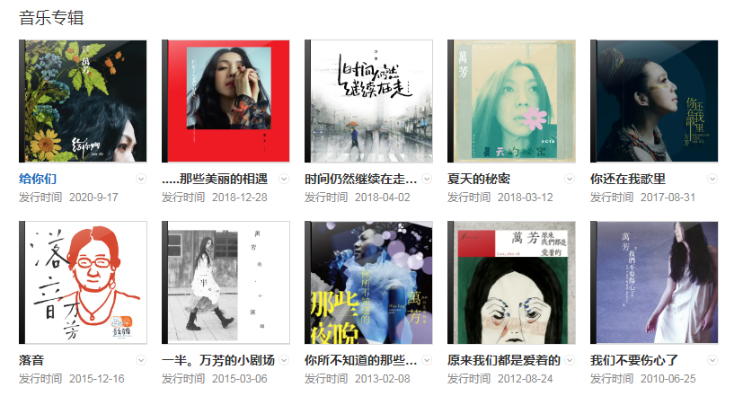 代表作品:新不了情、时间仍然继续在走、原来我们都是爱着的、我们不要伤心了、夜照亮了夜、就值得了爱、猜心、割爱、碧海情天、爱情限时批、不爱练习曲