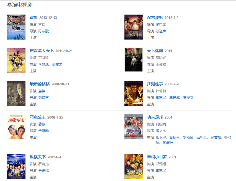 代表作品:箭侠恩仇、刁蛮公主、最后的格格、第八宗罪