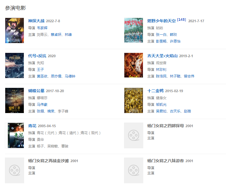 代表作品:神雕侠侣、天龙八部、杨门女将、武当、秋香、大内密探零零发、归途如虹、女人俱乐部