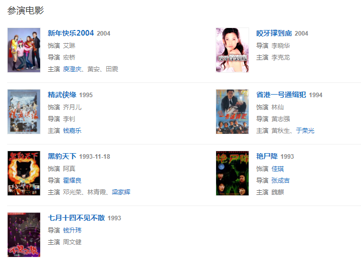 1994年,凭借恐怖片《七月十四不见不散》入围香港电影金像奖新人奖。