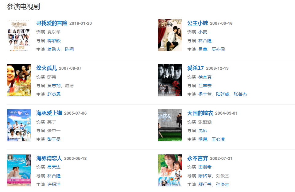 2003年,在爱情励志偶像剧《海豚湾恋人》中饰演女主角易天边。