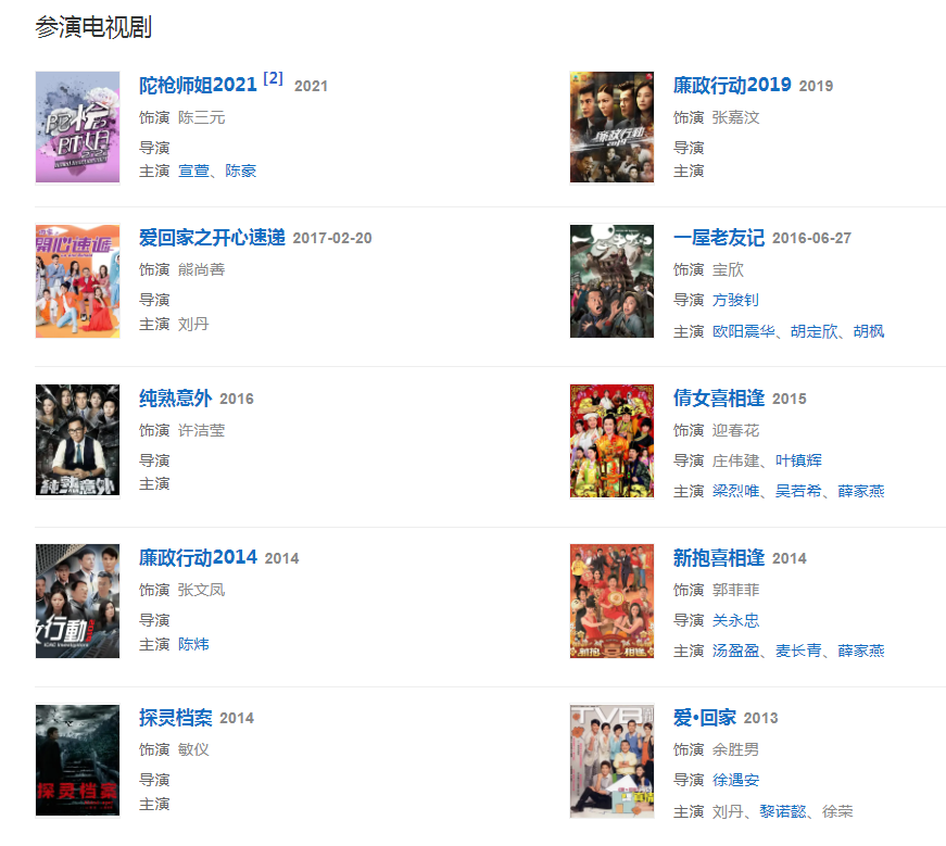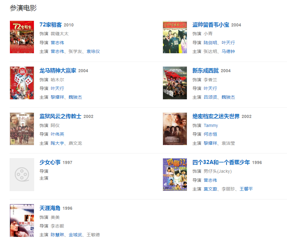 代表作品:《陀枪师姐》《倚天屠龙记》《美味情缘》《寻秦记》《雪山飞狐》