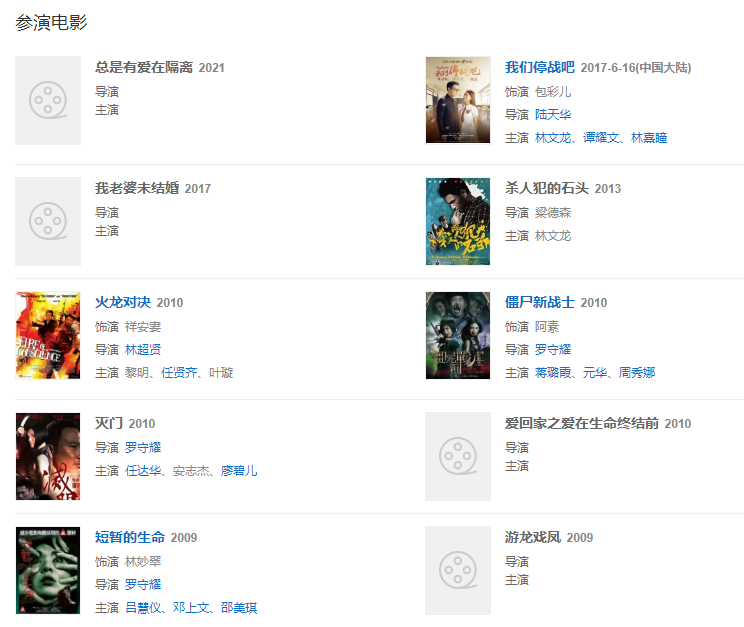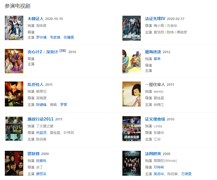 代表作品:法网群英,情陷夜中环,我和僵尸有个约会
