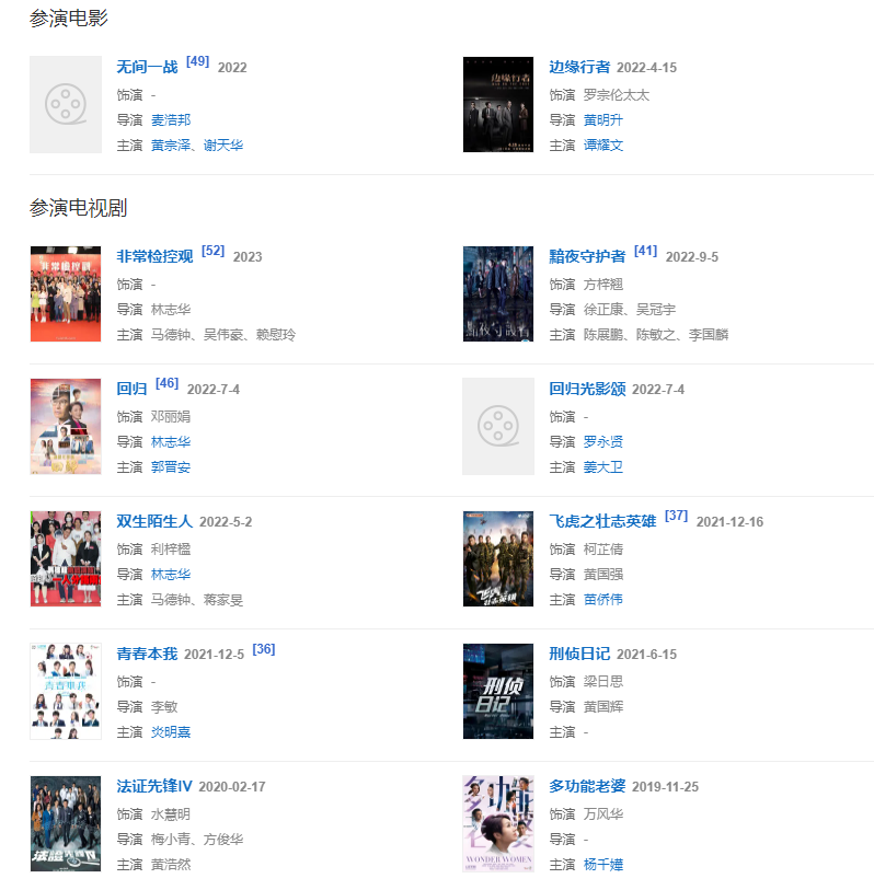 2020年2月,主演的悬疑犯罪剧《法证先锋IV》播出。