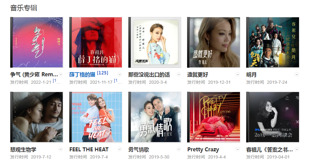 代表作品:挥着翅膀的女孩、我的骄傲、搜神记、天窗、小小、痛爱、心淡、独照、一拍两散、习惯失恋、越唱越强、这就是爱吗
