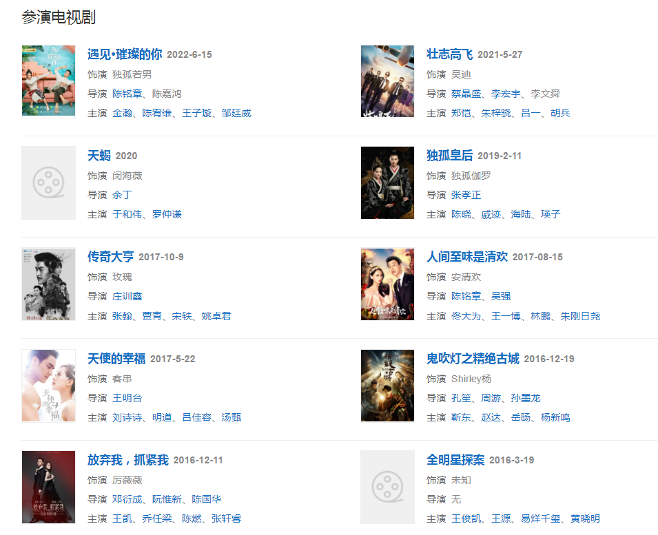 代表作品:王子变青蛙、命中注定我爱你、笑傲江湖、胜女的代价、鬼吹灯之精绝古城、佳期如梦、偏偏喜欢你