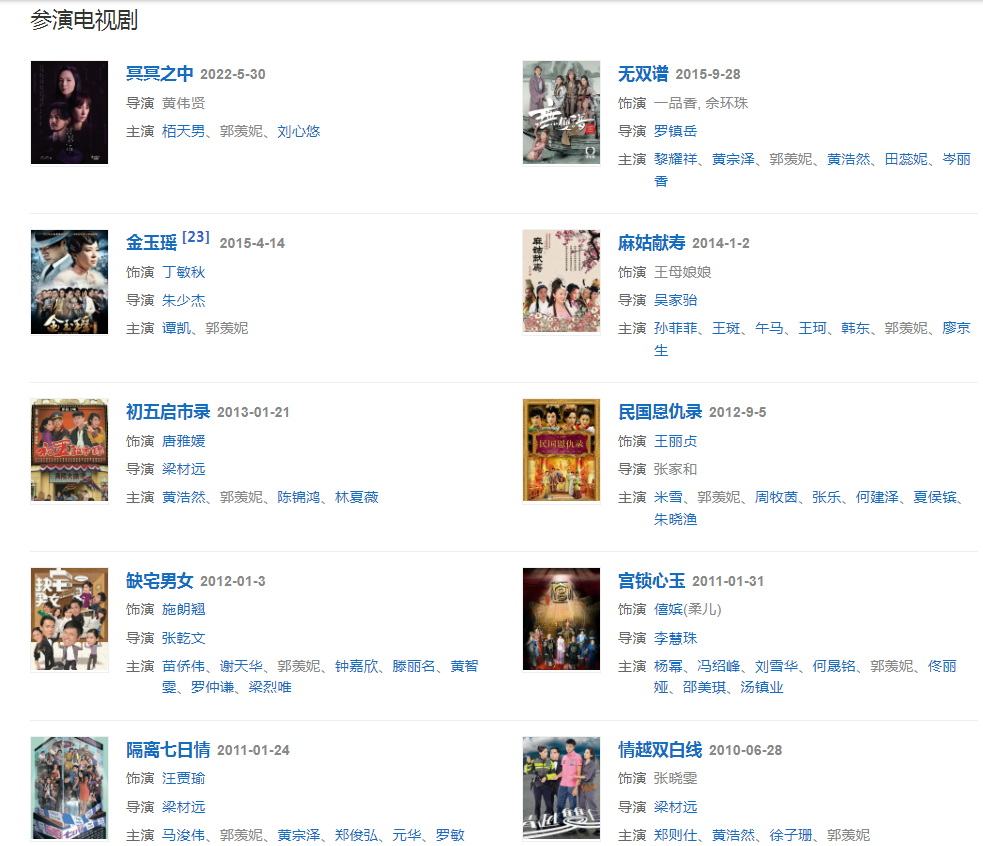 代表作品:寻秦记、牛郎织女、游剑江湖、古灵精探B、初五启市录、天涯侠医、帝女花、汇通天下、无名天使3D、金玉瑶、缺宅男女、民国恩仇录、隔离七日情、争霸传奇、翻新大少