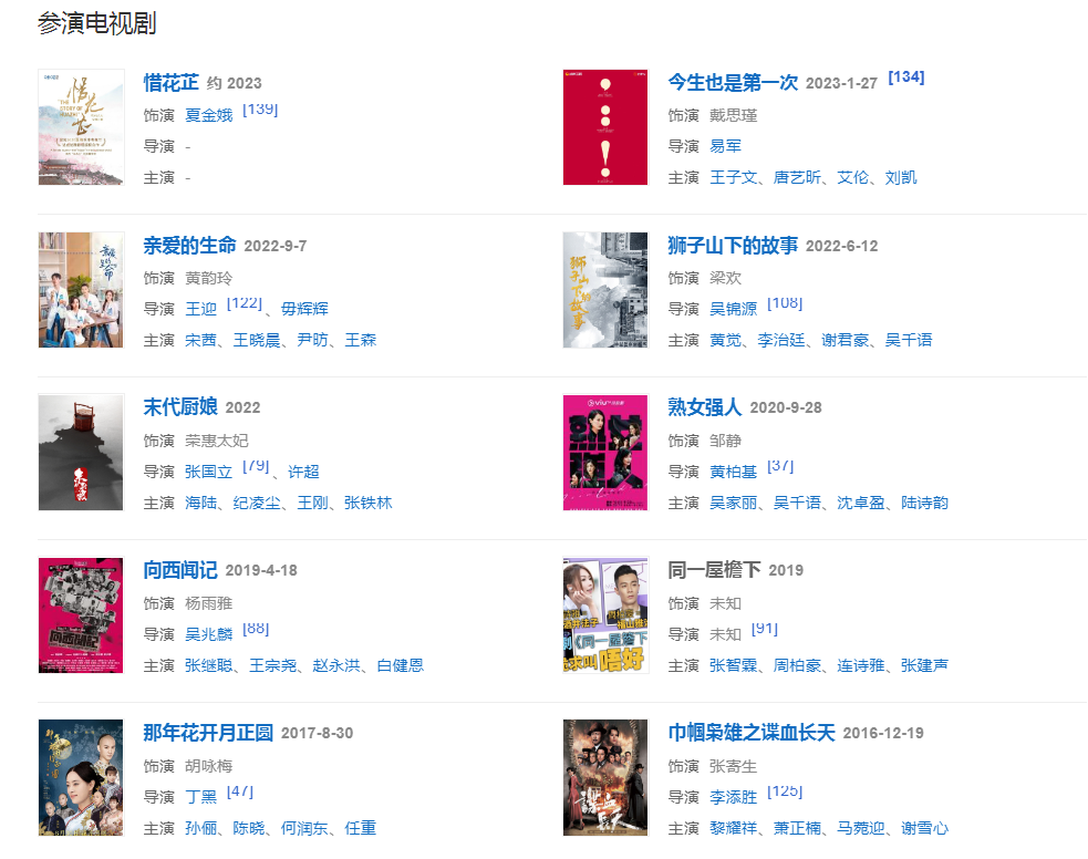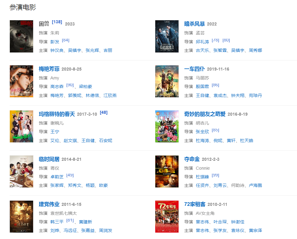 代表作品:万凰之王、怒火街头、我的野蛮奶奶、肥田囍事、那年花开月正圆、领养、我的继父是偶像、稀世情缘 (2004)
