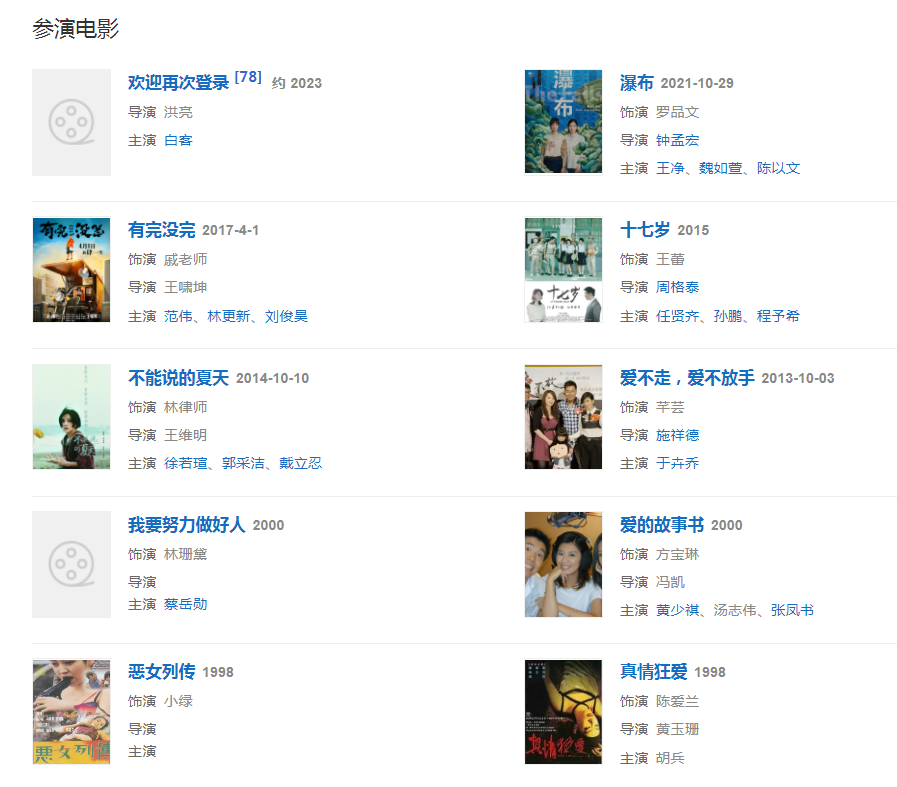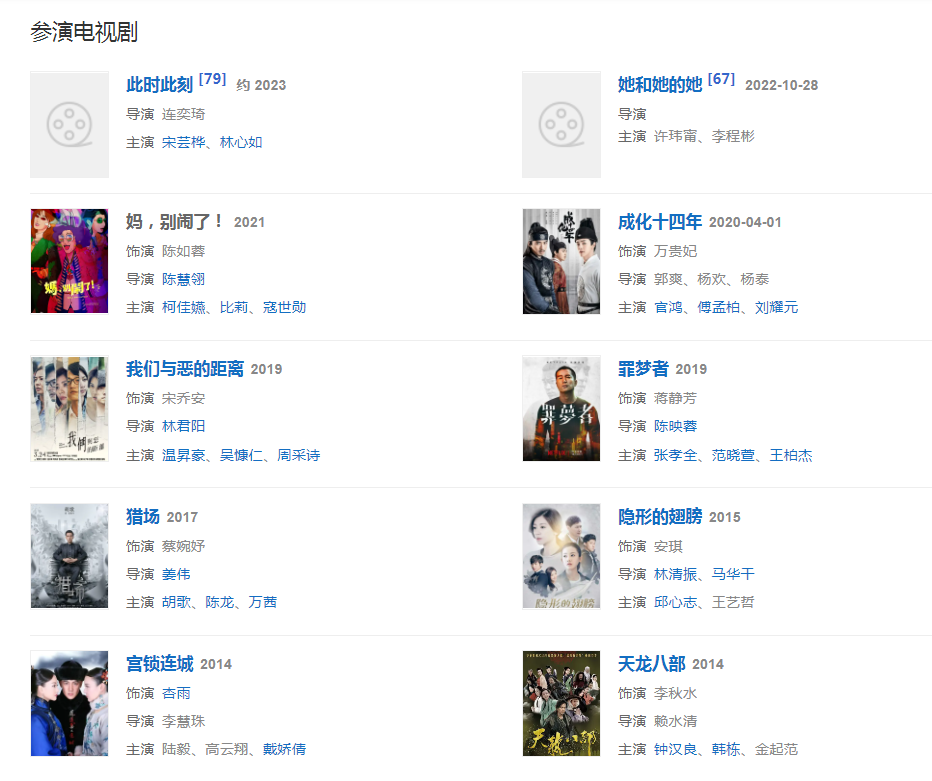 代表作品:倚天屠龙记、至尊红颜、大汉天子、我们与恶的距离、太平公主秘史、超人气学园、飞龙在天、瀑布