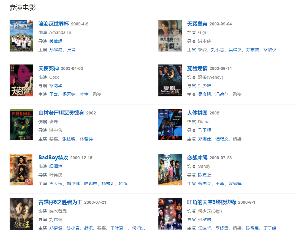 代表作品:古惑仔之人在江湖、97家有喜事、山村老尸、倚天屠龙记、金枝欲孽、珠光宝气、如果真的恋爱