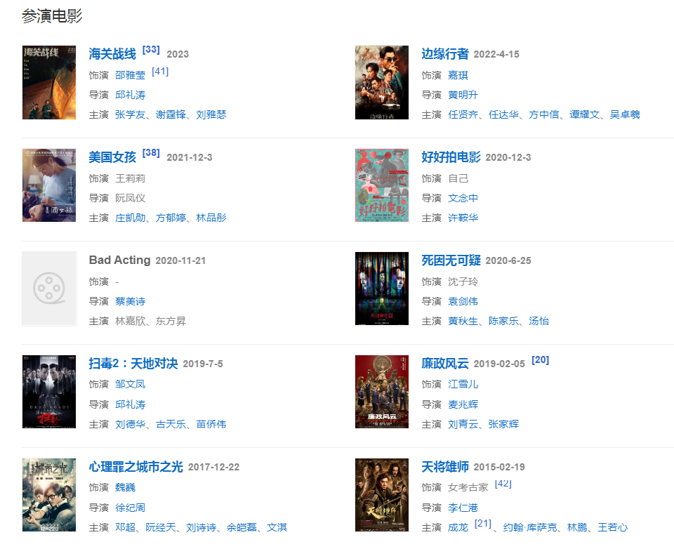 2022年4月6日,由林嘉欣等主演的电影《海关战线》开机。4月15日,参演的犯罪动作电影《边缘行者》上映。