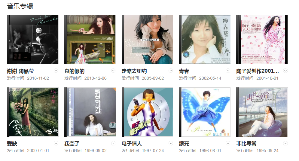代表作品:太委屈、姐姐妹妹站起来、离开我、真的假的、走路去纽约、陶子艺言堂、娱乐新闻