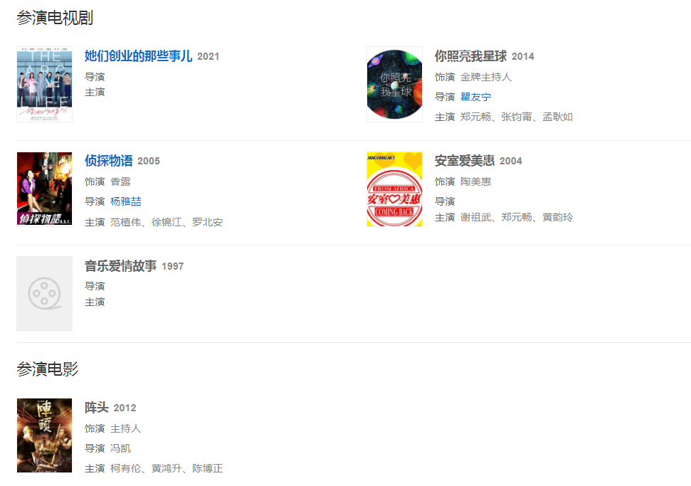 1997年,出演个人首部电视剧《音乐爱情故事》。