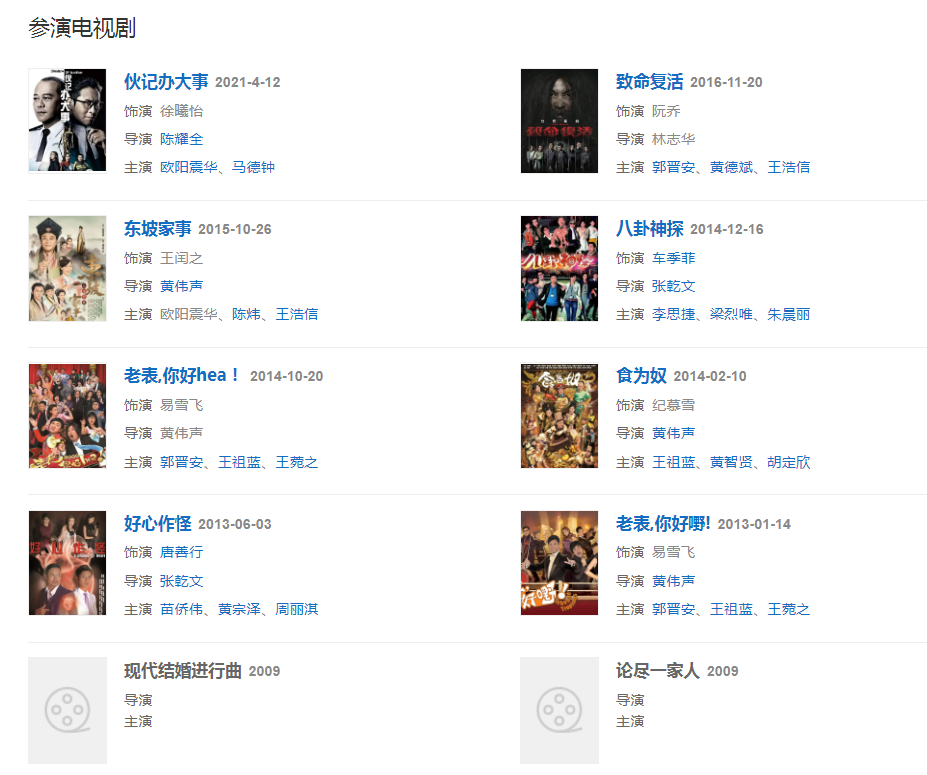 1999与2004年主演系列剧《我和僵尸有个约会II》和《我和僵尸有个约会III》 。