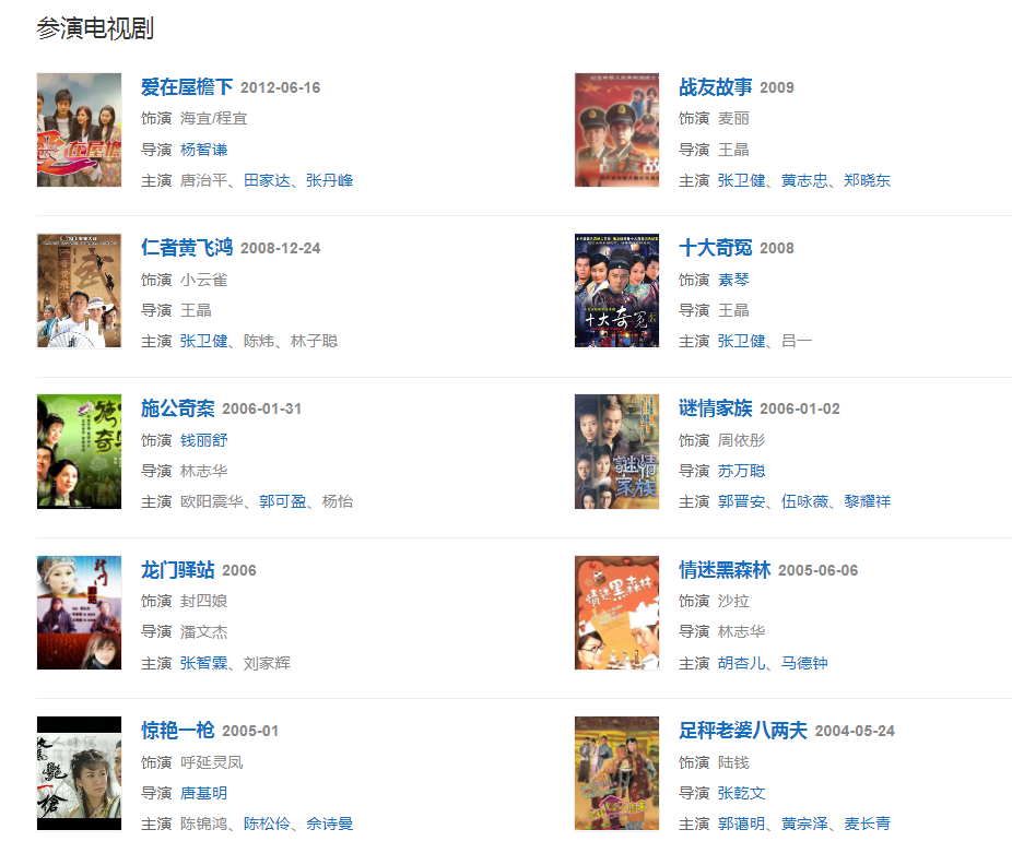 代表作品:锦绣良缘、爱在屋檐下、谈判专家、天子寻龙、仁者黄飞鸿、足秤老婆八两夫、谜情家族
