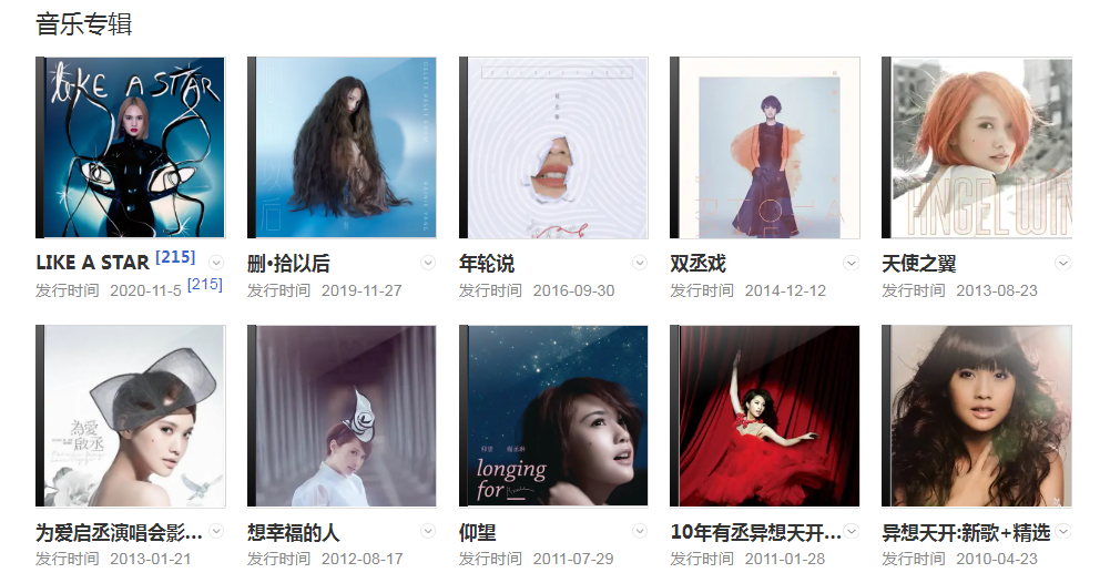 代表作品:暧昧、带我走、雨爱、年轮说、左边、青春住了谁、仰望、荼蘼、海派甜心、恶魔在身边