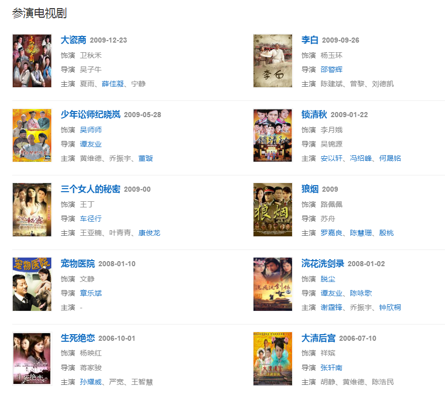 2009年主演电视剧《锁清秋》和《大瓷商》。
