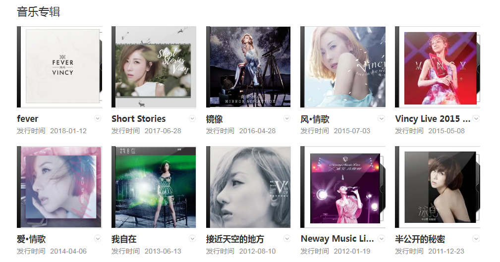 2015年推出专辑《风·情歌》并获得IFPI唱片销量大奖颁奖礼2015十大销量普通话唱片。