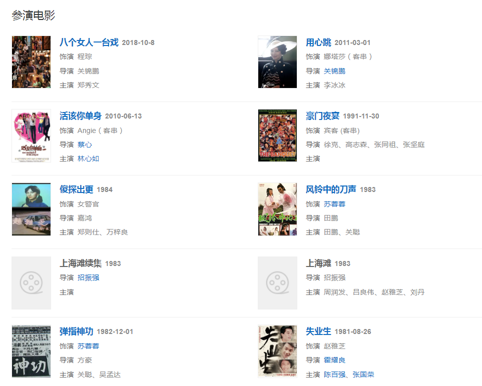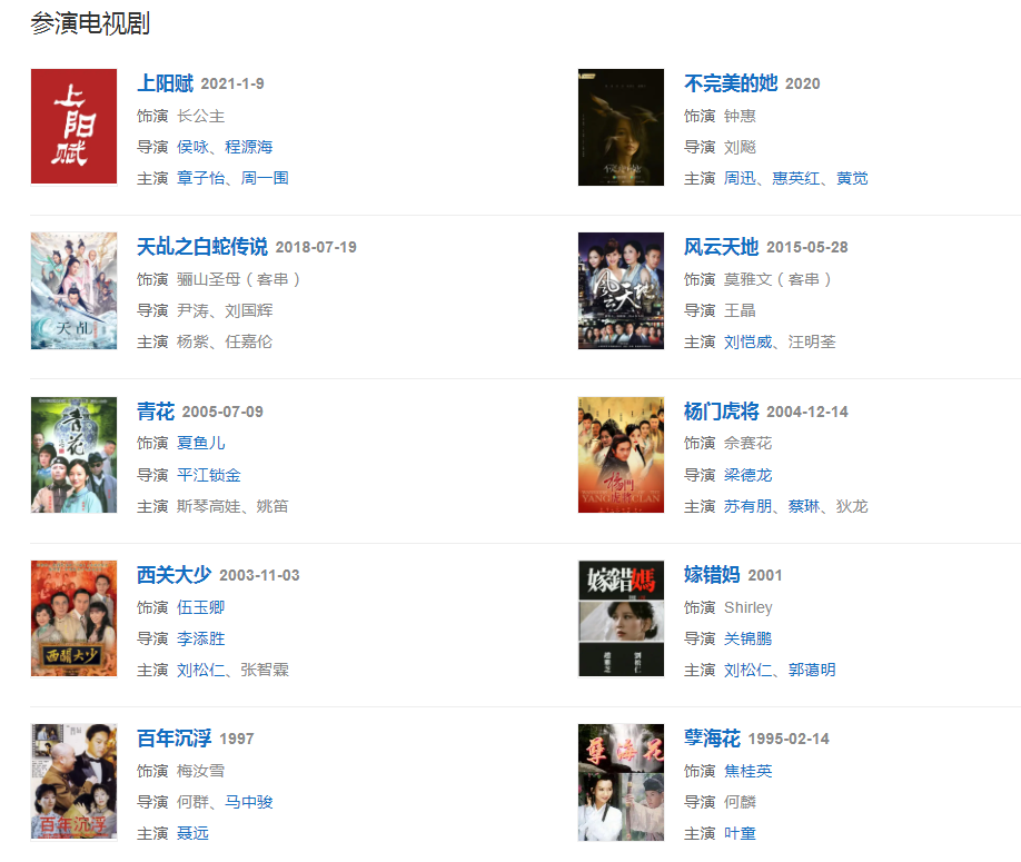代表作品:新白娘子传奇、上海滩、戏说乾隆、楚留香、京华烟云、飞鹰、女黑侠木兰花、观世音、笑看良缘