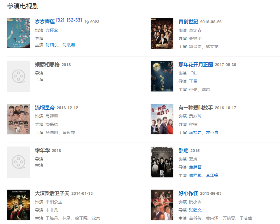 2016年10月,出演都市情感剧《有一种爱叫放手》 。