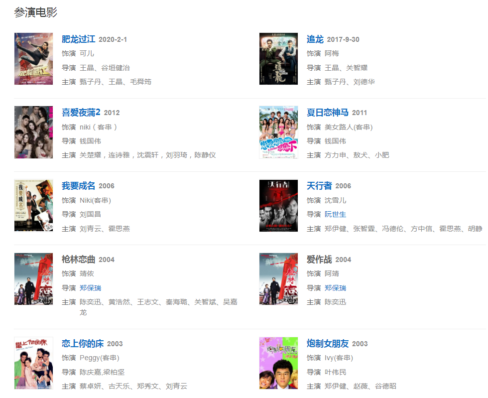 2002年11月,凭借处女作《玉女添丁》正式出道,并借此被提名香港电影金像奖“最佳新人奖”。