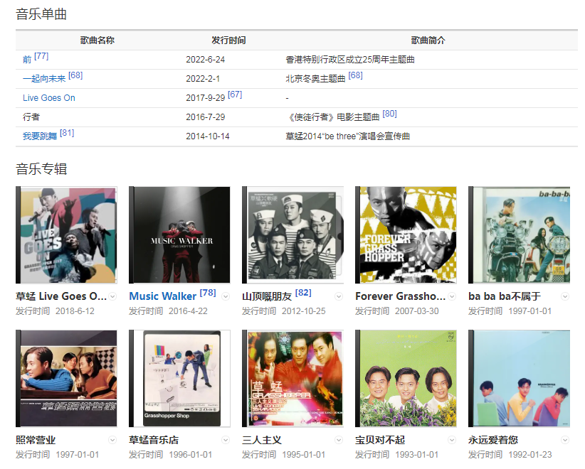 20世纪80年代出道,草蜢以劲歌热舞在流行乐坛另辟蹊径,成为了香港八九十年代众多年轻人的偶像,九十年代初期,当四大天王统治香港乐坛时,草蜢依然能够光彩耀人。草蜢自1985年成立以来,作为香港乐坛一个长寿的组合,始终活跃在香港歌坛长红不倒,堪称典范。