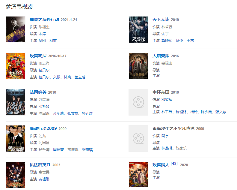2008年与成龙、吴彦祖、钱嘉乐等合作电影《新宿事件》,饰演老鬼。2011年与梁朝伟、刘青云、周迅等合作电影《大魔术师》,饰演李奉仁。