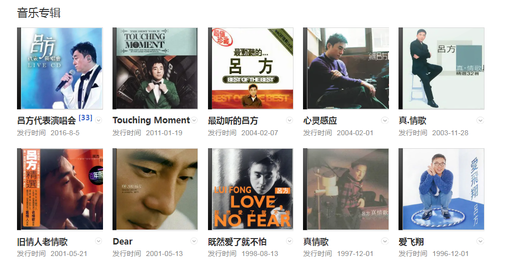 吕方虽然外貌大众化,但那个在澳门街头卖猪油糕的赤脚绅士依旧没被淡忘,每当听到那曲立志的《每段路》时,时光仿佛又回到了上世纪80年代。吕方虽然给人木讷及懒散之感,事事都无所谓似的,但其实他也有斗心,希望在颁奖礼上获得自己想要的奖项。不过经过岁月的洗礼,已学会放开怀抱,知足常乐,如今他已不会为奖项而费神。以高音清澈通透而驰名于乐坛的他。早期事业发展不俗,其中《你令我快乐过》《每段路》《只因我太痴》和《弯弯的月亮》等歌曲都曾大行其道。纵使经历事业波折起伏,他的好声音依然没有改变。
