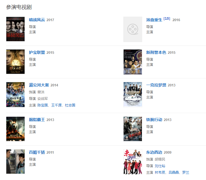 代表作品:公仆、喋血双雄、龙虎风云、兄弟