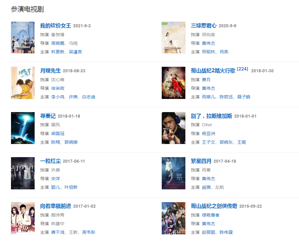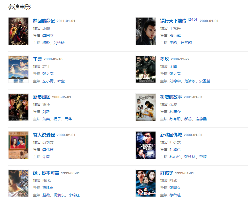 代表作品:祝你一路顺风、梁祝、萧十一郎、少年王、追风少年、步步惊心、新白发魔女传