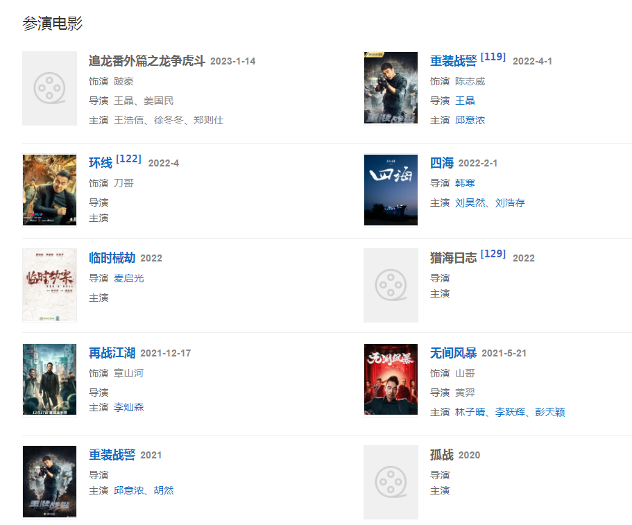 2023年1月14日,主演的动作电影《追龙番外篇之龙争虎斗》在爱奇艺云影院独家上映,在片中饰演跛豪 ;
