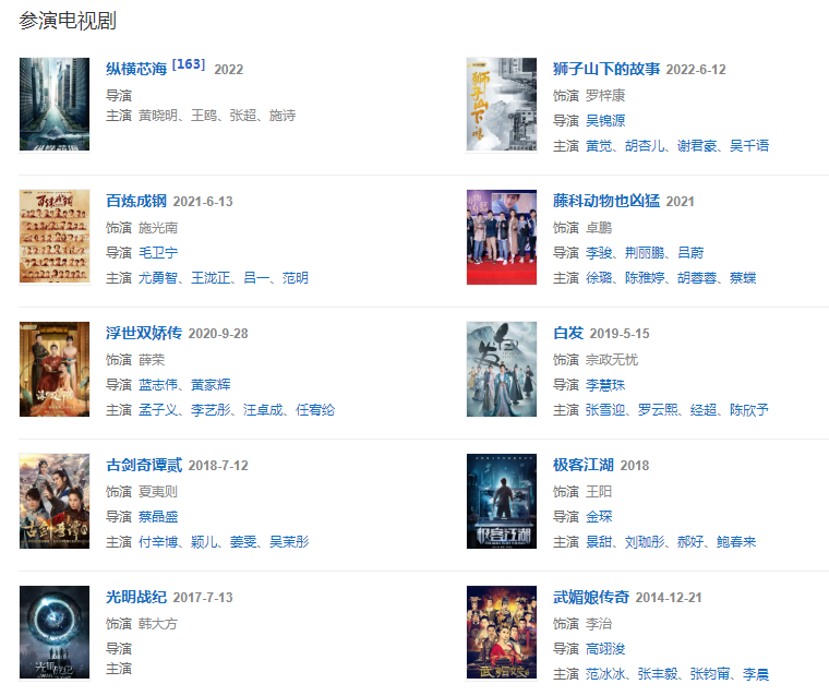 代表作品:武媚娘传奇、岁月神偷、李小龙我的兄弟、一夜惊喜、寒战、倾城之泪、岁月轻狂、一片痴、尼古拉