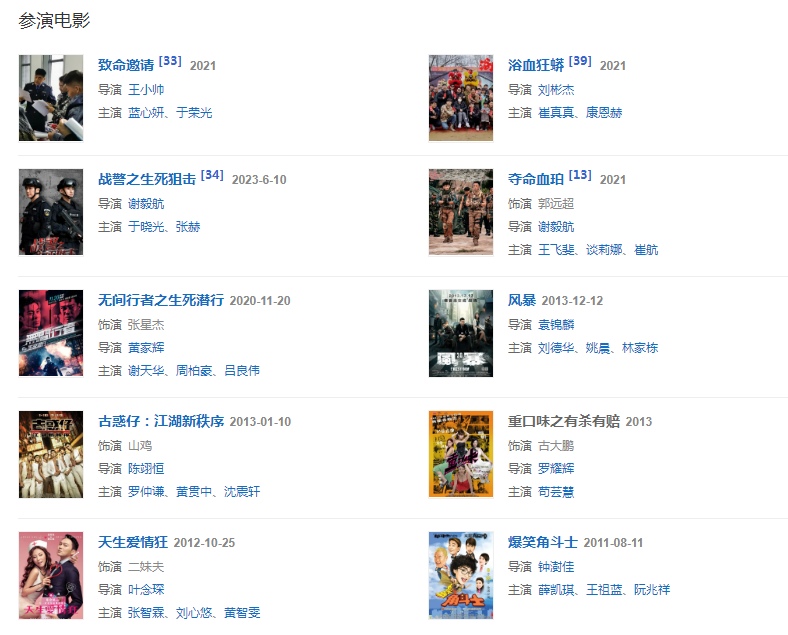 2020年,主演动作片《夺命血珀》、《战警之生死狙击》 。