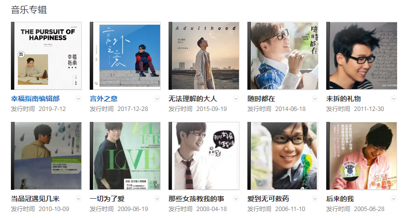 代表作品:我以为、掌心、门没锁、陪你一起老、后来的我们、无可救药、那些女孩教我的事、随时都在、疼你的责任、想见你、就叫我孩子