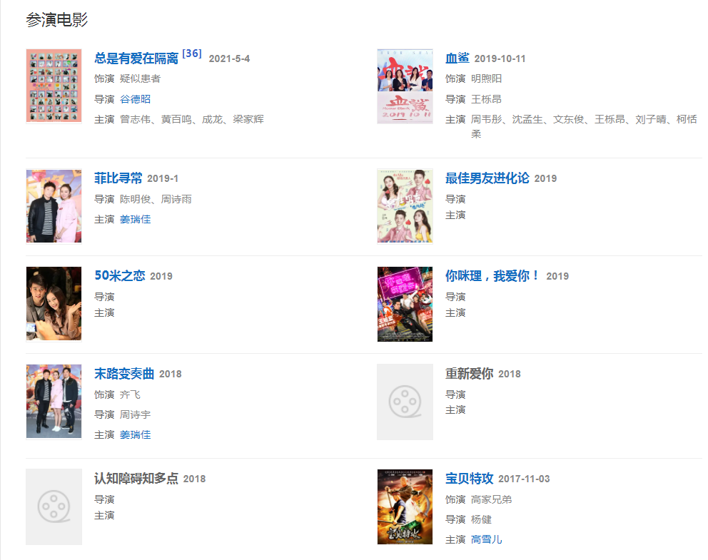 2021大湾区中秋电影音乐晚会,与众星演唱歌曲《狮子山下》以及交响乐快闪《我的中国心》;参演电视剧《飞虎之壮志英雄》。