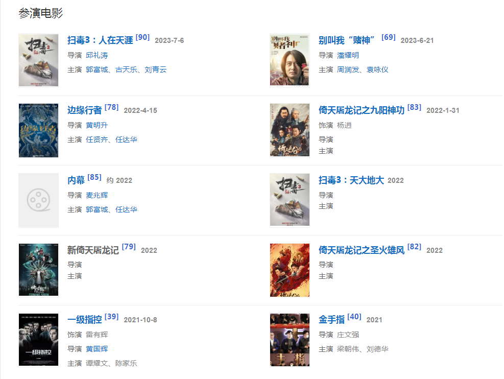 2023年1月8日,主演的电影《冲锋》宣布开机并发布首张概念海报。7月6日,参演的电影《扫毒3:人在天涯》上映。 6月21日,主演的电影《别叫我“赌神”》上映。