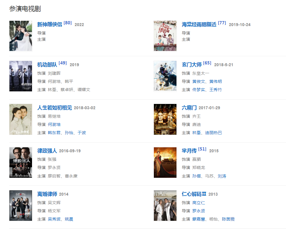 2014年,与吴秀波、姚晨主演内地剧《离婚律师》,饰演律师“吴文辉”。