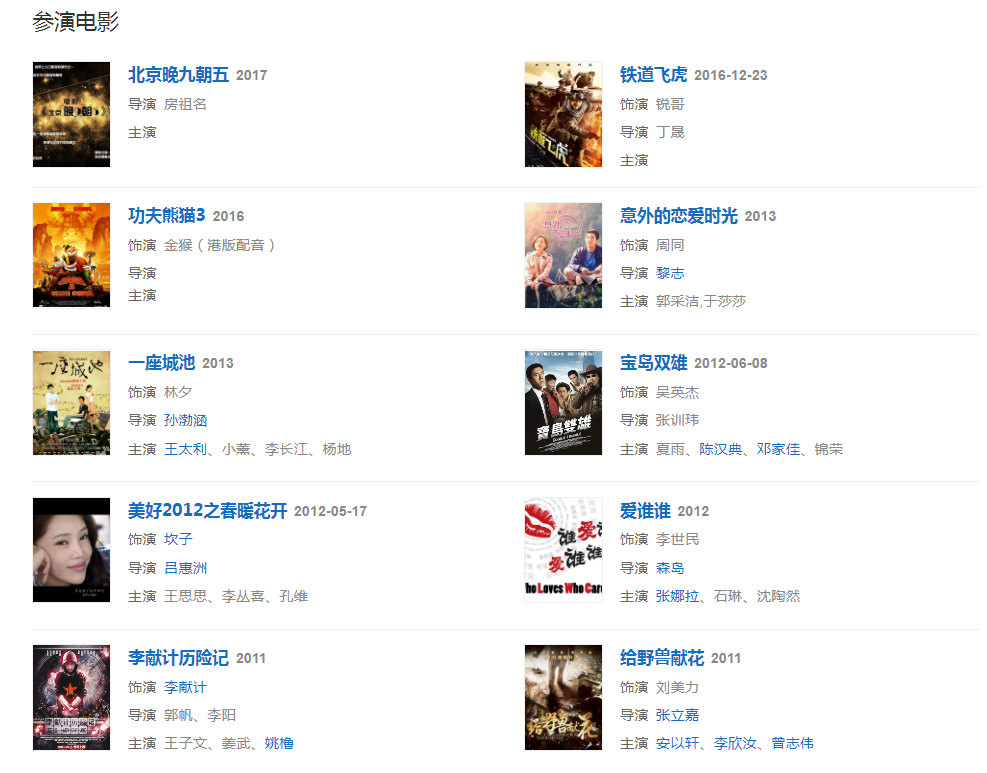 代表作品:千机变2、追影、花木兰、边走边唱、分手说爱你