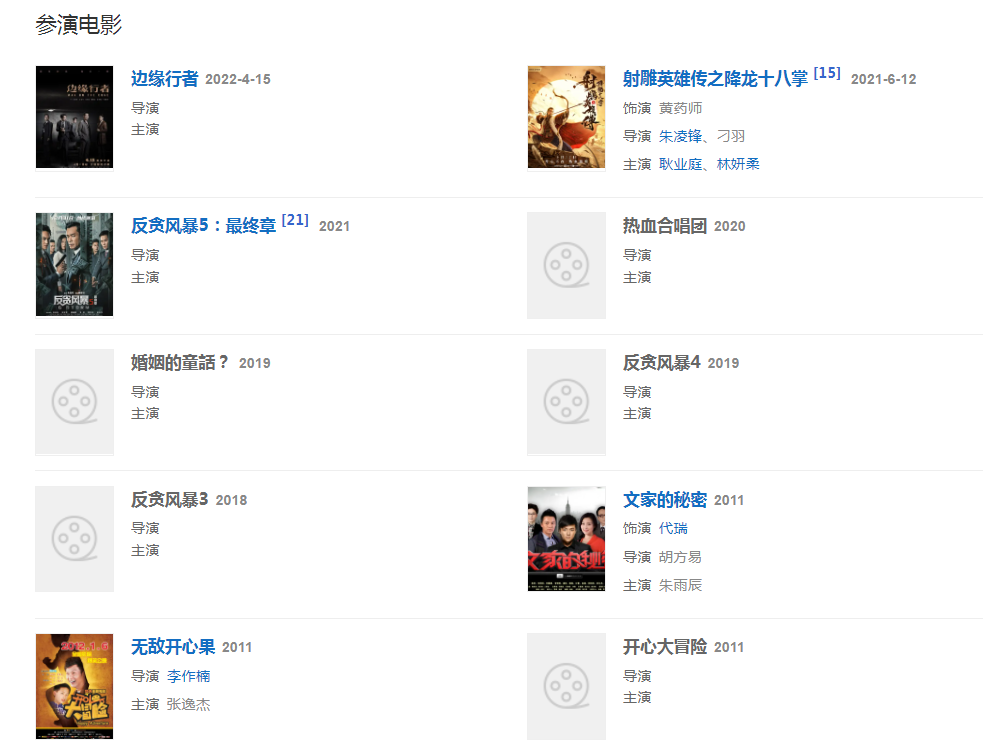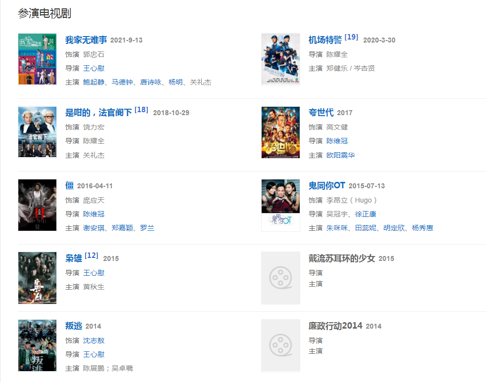 代表作品:新龙门客栈、国际刑警、小李飞刀、武当张三丰