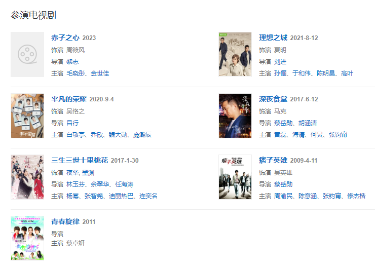 代表作品:艋舺、搜索、痞子英雄、南极之恋、三生三世十里桃花、狄仁杰之神都龙王、致我们终将逝去的青春、平凡的荣耀