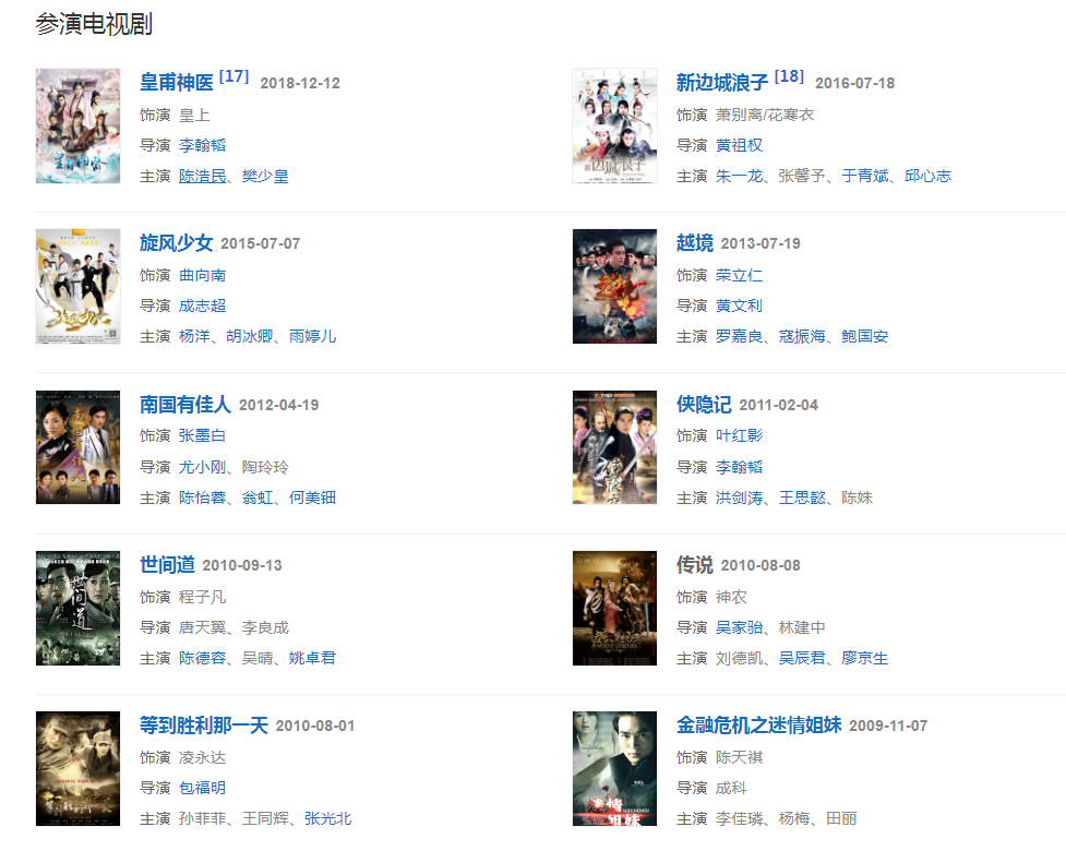 1994年参演《七侠五义》饰演展昭一角。