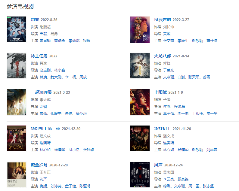 2020年,与陈道明、刘诗诗、倪妮等主演电视剧《流金岁月》。