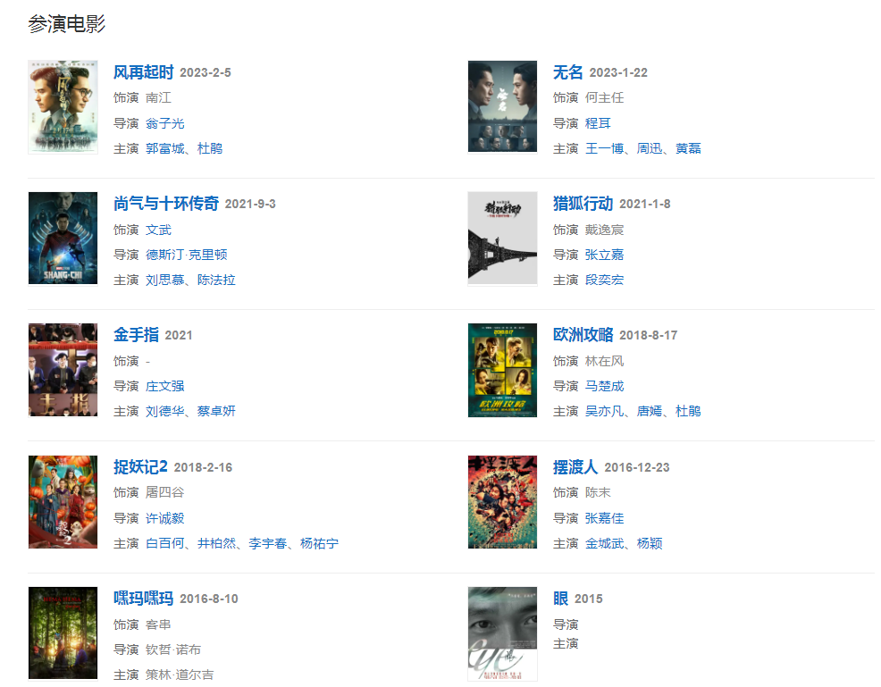 2021年主演电影《金手指》。