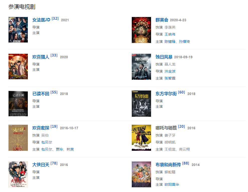 代表作品:《蝙蝠别墅》、《重案组》,《大话西游》《国产凌凌漆》