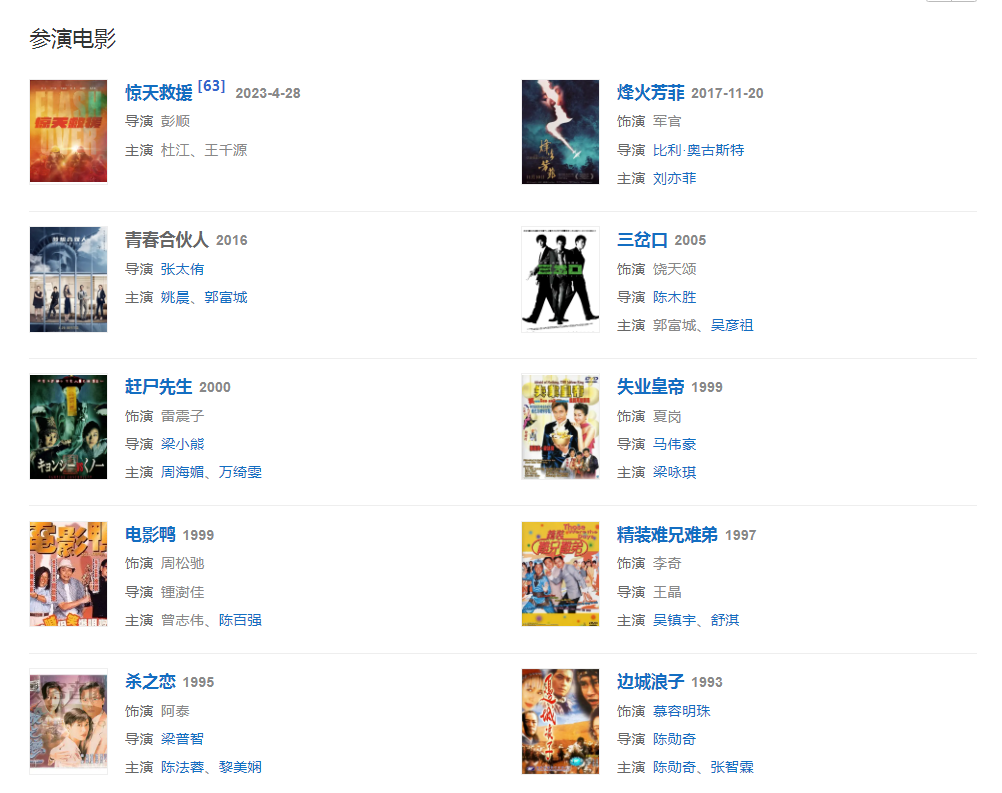 2023年1月31日,友情出演的网剧《相思令》开机;4月28日,参演的电影《惊天救援》上映;4月12日,参演电视剧《青春之城》播出。7月6日,出演的电影《扫毒3:人在天涯》上映。