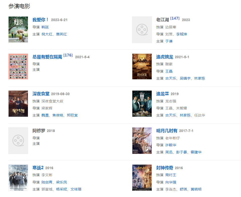 代表作品:寒战、情人、寒战2、黑社会、垂帘听政、智取威虎山、爱在别乡的季节、92黑玫瑰对黑玫瑰
