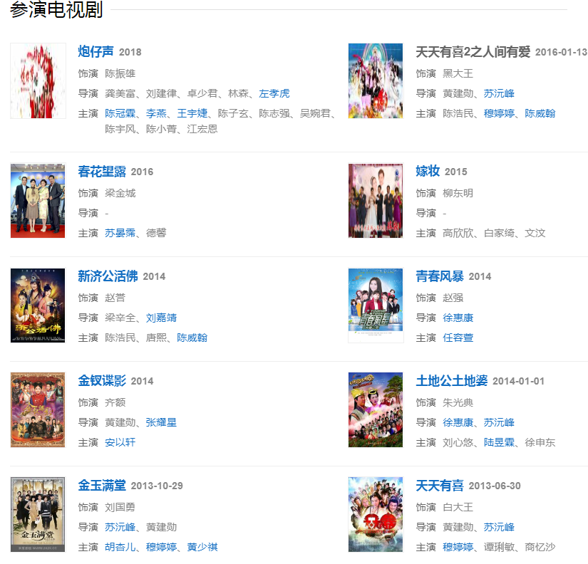 代表作品:百万新娘、《不了情》、《戏说乾隆》、《深宫谍影》