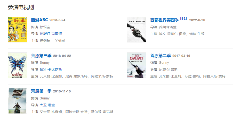 2022年6月26日,主演的美剧《西部世界第四季》在HBO Max开播。