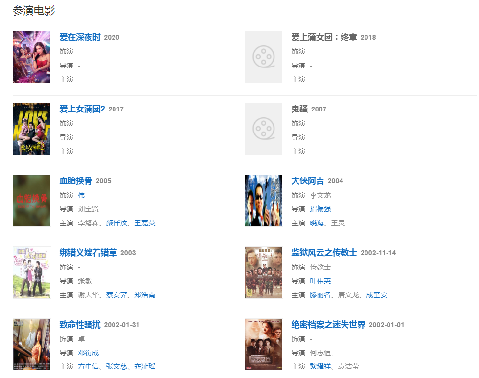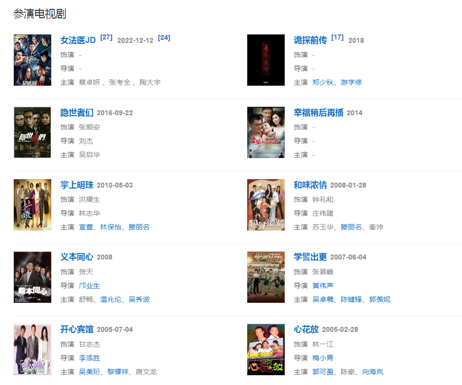 代表作品:刑事侦缉档案、纵横四海、壹号皇庭、掌上明珠、倚天屠龙记
