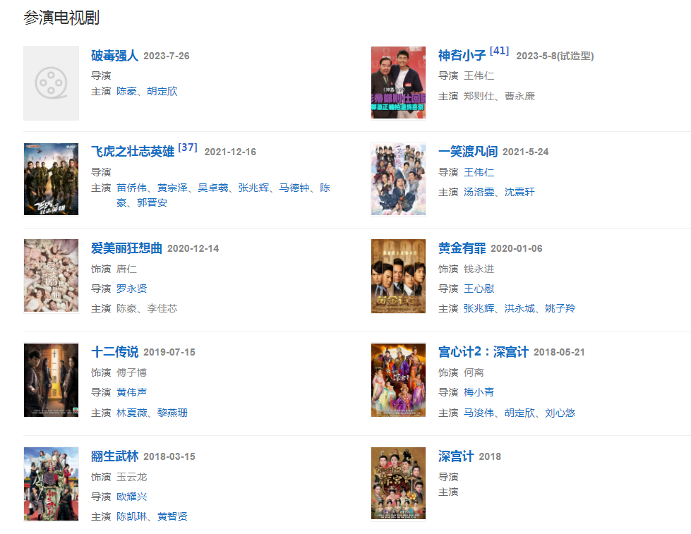 代表作品:《恋爱自由式》《怪侠一枝梅》《法证先锋3》《当旺爸爸》《幕后玩家》